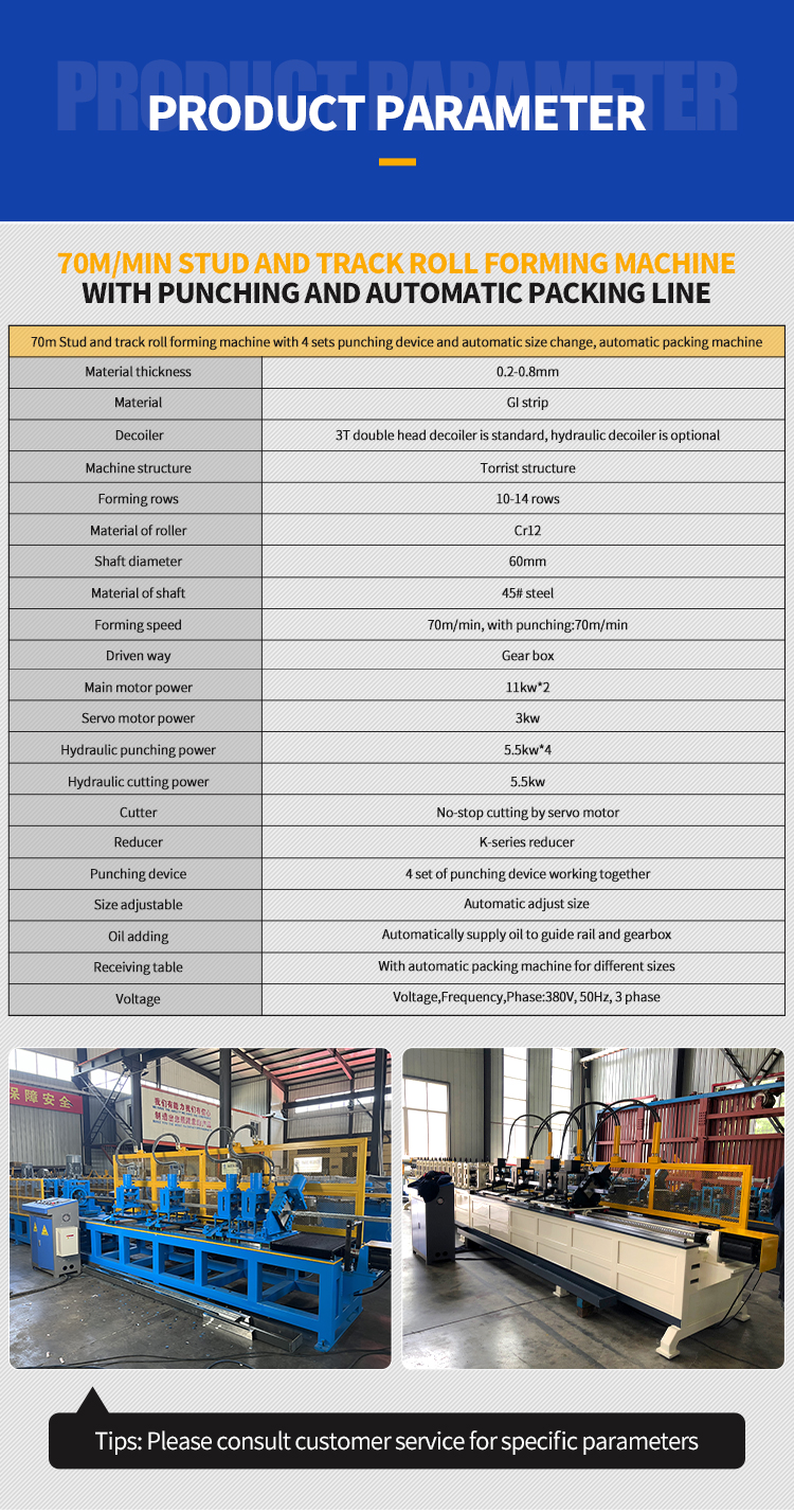 70M/min Stud & Track Roll Forming Machine with 4 Independent Punching Devices and Automatic Packing System