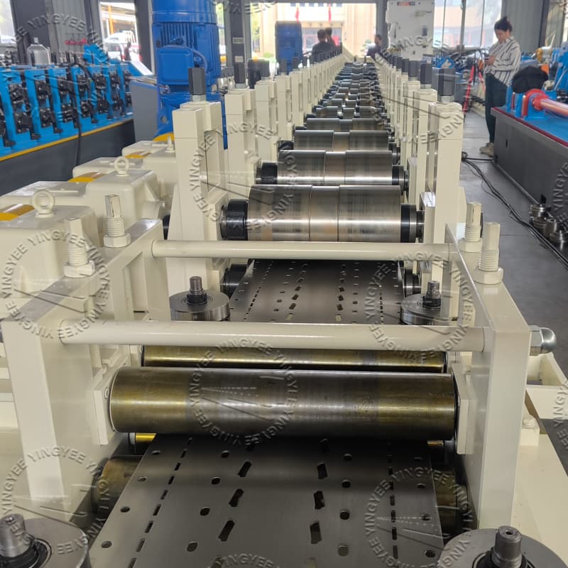 The design of this storage rack roll forming machinery enables the roll forming part to be changed quickly. That is why only one machine can produce several different profiles and the forming unit can be changed in a short time.