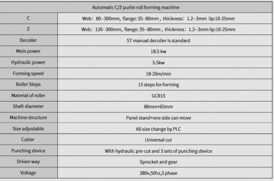 One machine can make all size of both C and Z purlin